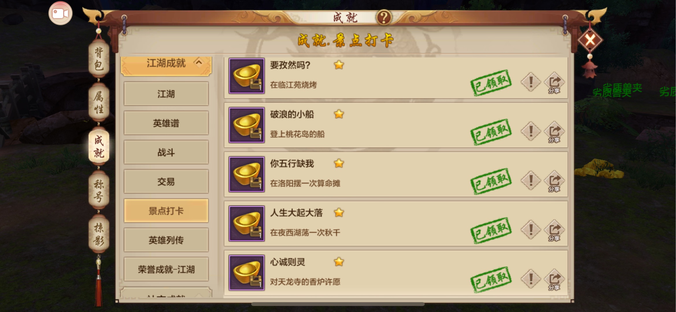 (完成这些景点打卡可以获得成就积分在积分商店兑换喜欢的物品哦)