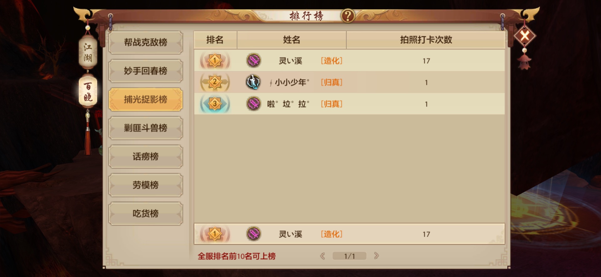 PS:打卡分享还可以拿百晓榜单上的捕光捉影榜排名哦!(每周都会更新)又可以拿很多成就啦!这个比较冷门,还有很多人不懂操作,轻松拿第一!赶快行动起来吧!带上你的家人们一起去打卡吧!